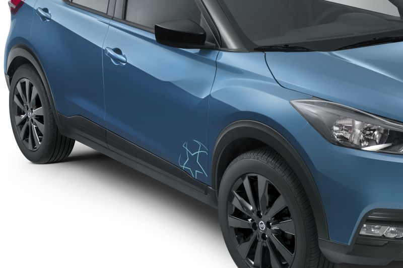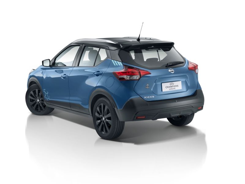 A marca ainda não revelou muitos detalhes da versão futebolística do Kicks, mas já antecipou a inédita combinação em dois tons para a carroceria nas cores azul turquesa com teto preto. Logotipos alusivos ao campeonato de clubes europeus, rodas de liga leve de 17 polegadas, faróis com máscara negra, aerofólio e numeração de cada unidade na grade frontal são alguns dos outros detalhes estéticos.
