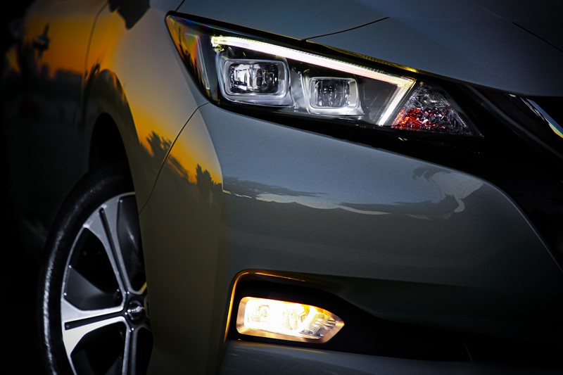 O Nissan Leaf 2021 também oferece outros equipamentos de segurança, como faróis de neblina dianteiros, luzes traseiras de LED e limpador de para-brisa com velocidade intermitente e sensor de chuva.