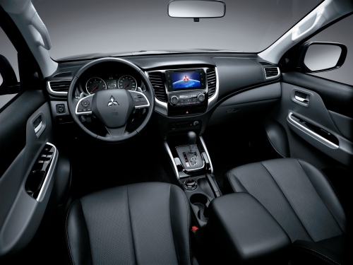 - A L200 Triton Sport é equipada com o sistema de Tração Super Select II, com 4×2, 4×4 (que pode rodar no asfalto), 4×4 com bloqueio do diferencial central e 4×4 reduzida; as trocas podem ser feitas através do seletor no console central|Foto: Divulgação