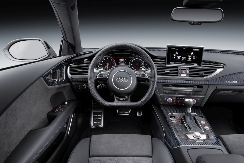 A máquina da montadora alemã conta com rodas de alumínio fundido de 21 polegadas na cor titânio fosco. Os detalhas de acabamento polidos e os discos de freio feitos de cerâmica de fibras de carbono (que reduzem o peso do sistema em 10 quilos) dão um caráter ainda mais esportivo ao RS 7 Sportback.