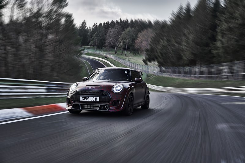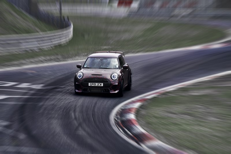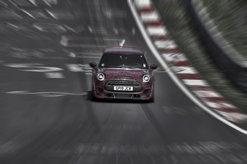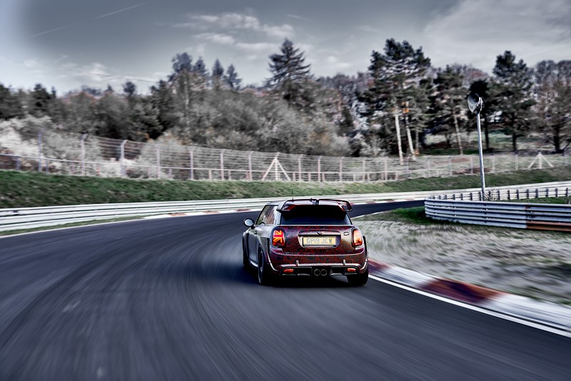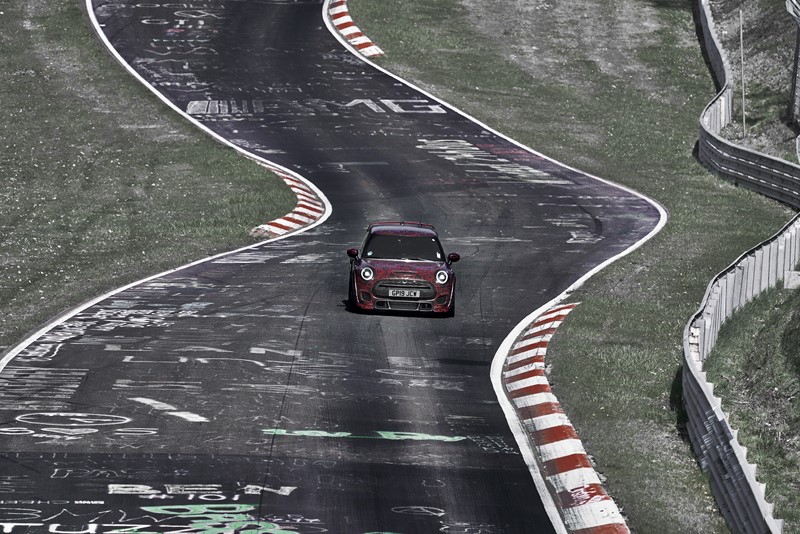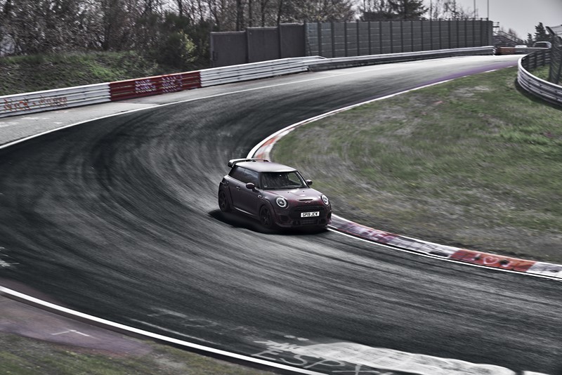 Segundo a fabricante, o novo esportivo top de linha já conta com tempos de volta pelo circuito que estão quase meio minuto abaixo do recorde estabelecido pelo seu antecessor. A geração anterior (segunda geração) do MINI John Cooper Works GP definiu o benchmark em Nürburgring-Nordschleife com um tempo de volta de 8’23’’. O protótipo do novo MINI John Cooper Works GP (terceira geração) passou pelo lendário “Inferno Verde” em menos de oito minutos.