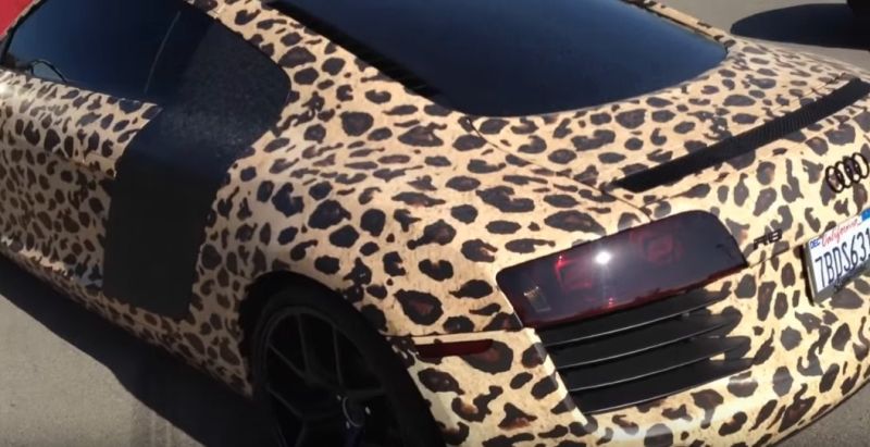 - Justin Bieber também já fez algumas personalizações duvidosas. Seu Audi R8 recebeu uma polêmica pintura de oncinha |Foto: Reprodução/YouTube