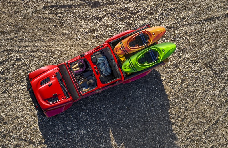 Outra característica semelhante entre os dois é que o teto e as portas podem ser removidos sem dificuldades. Como opcional, a picape vai oferecer um teto de lona. Uma tomada de 115 volts também será disponibilizada à parte, para quem precisar se aventurar mais com o modelo.