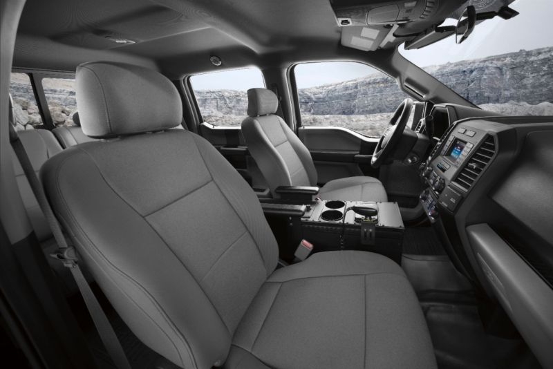 Para aguentar o tranco, a F-150 Police Responder teve sua carroceria reforçada com aço de alta resistência. A cabine dupla é feita com liga de alumínio de grau militar para aumentar a segurança dos cinco passageiros. Na parte externa, o para-choque dianteiro conta com um reforço especial para suportar choques contra outros veículos. O fator é essencial para perseguições, já que, em alguns casos, é preciso interceptar carros em fuga.