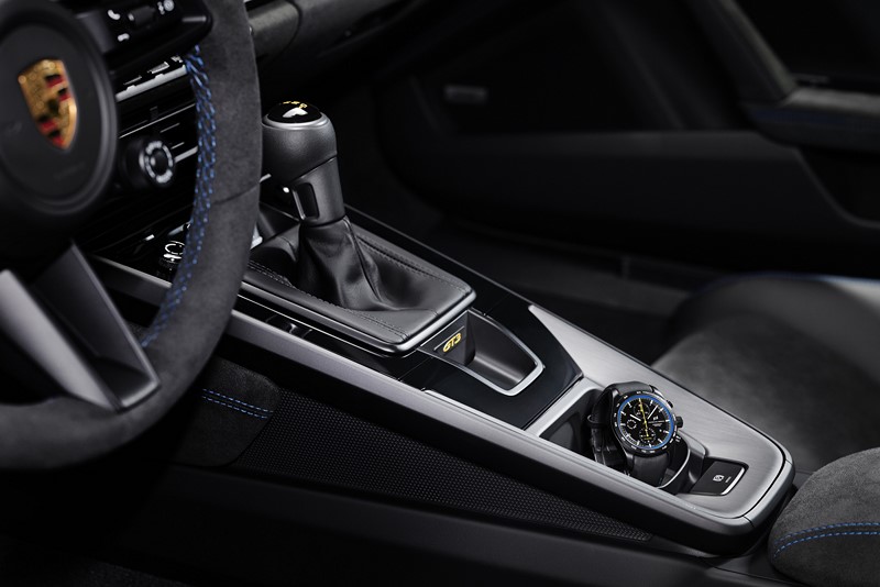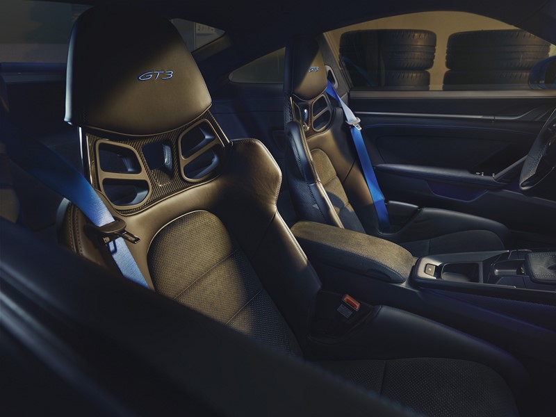 O cockpit está alinhado com a geração atual de modelos. Um novo recurso é o display do trajeto: com o toque de apenas um botão, os displays digitais à esquerda e à direita do conta-giros central, que chega a 10 mil rpm, são reduzidos a informações como indicador de pressão dos pneus, pressão do óleo, temperatura do óleo, nível do tanque de combustível e temperatura da água, que são essenciais ao dirigir em uma pista. Também inclui um assistente de mudança de marcha visual com barras coloridas à esquerda e à direita do conta-giros e uma luz de mudança derivada dos carros de corrida da Porsche.
