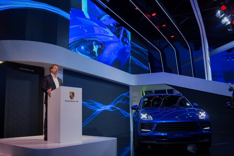 O menor SUV da empresa também foi apresentado. Ele chega em pré-venda com motor de 2-litros, que rende 252 cv. O câmbio é o PDK da Porsche de sete marchas.