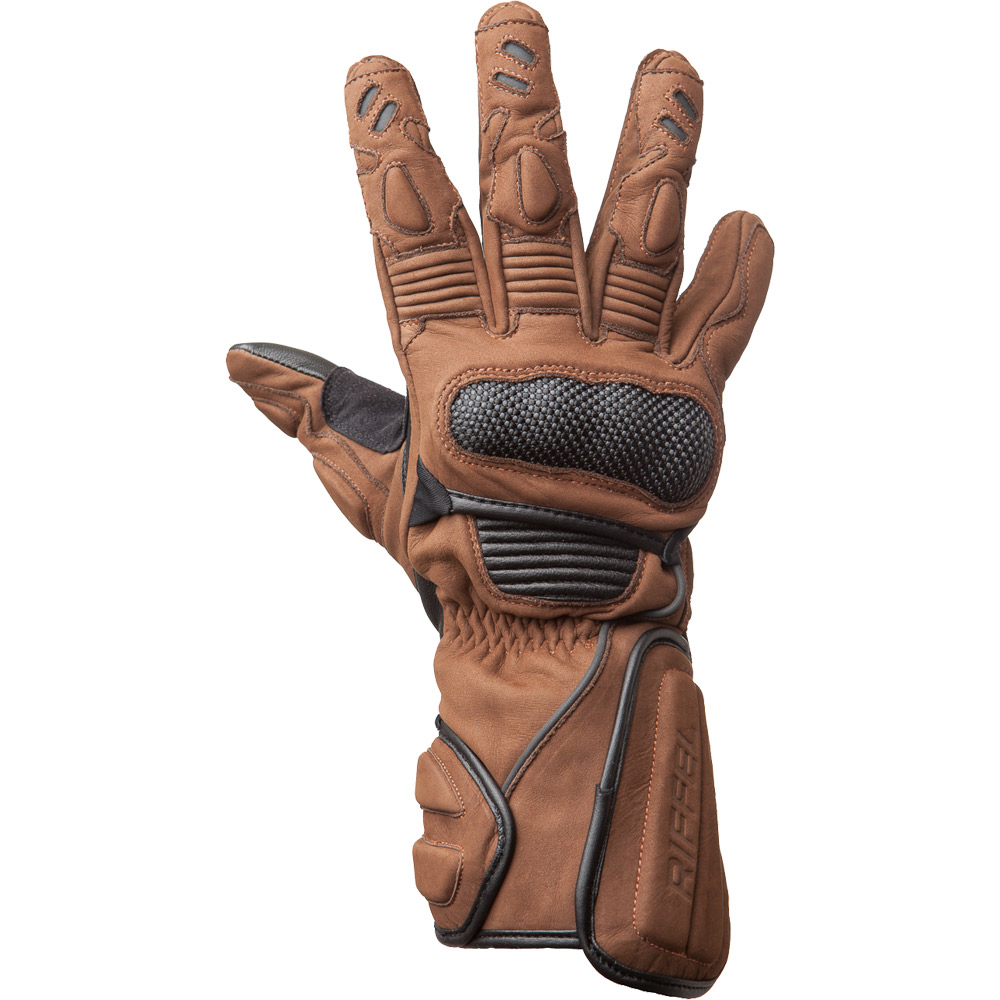 - Luva em Couro Racing Nobuck – Riffel: tem proteção em fibra de carbono no dorso da mão; por ser couro nobuck, é mais macia e seus poros são mais abertos, permitindo elhor ventilação e facilitando a transpiração|Foto: Reprodução