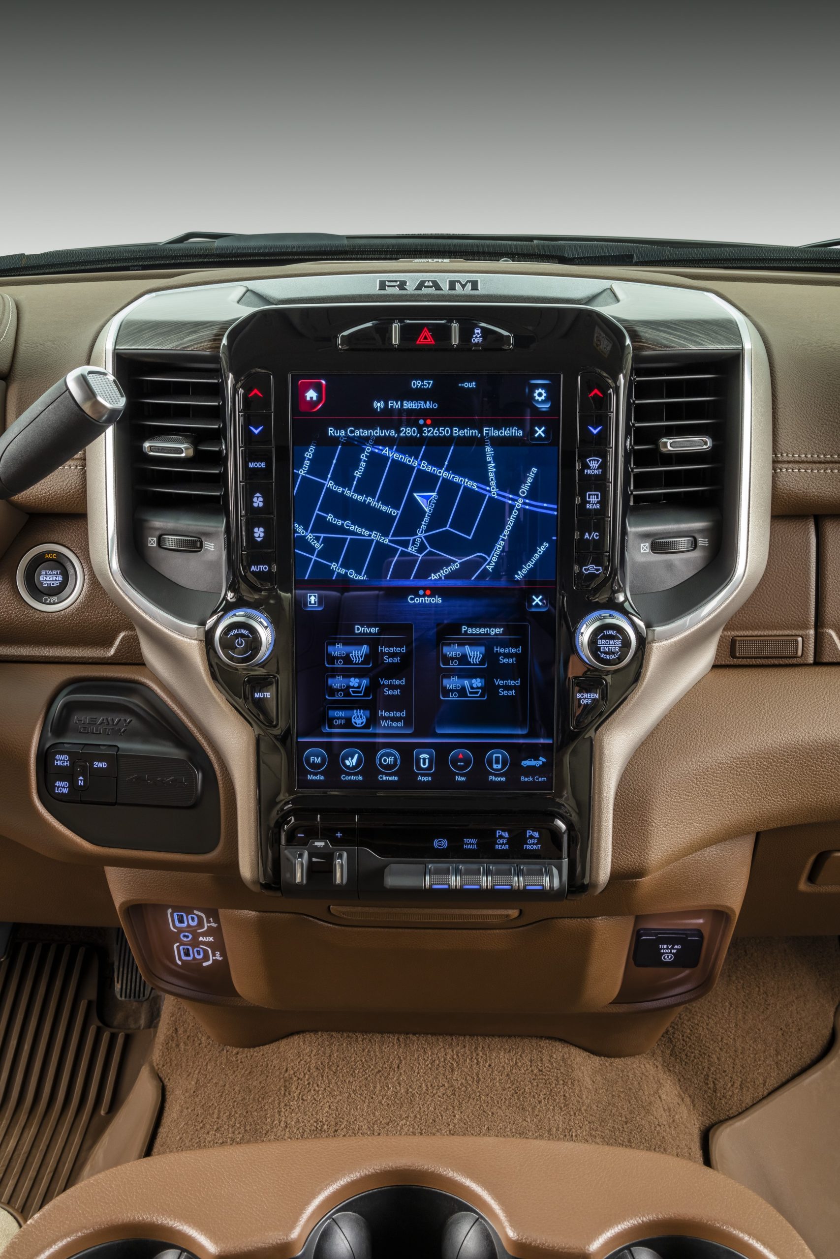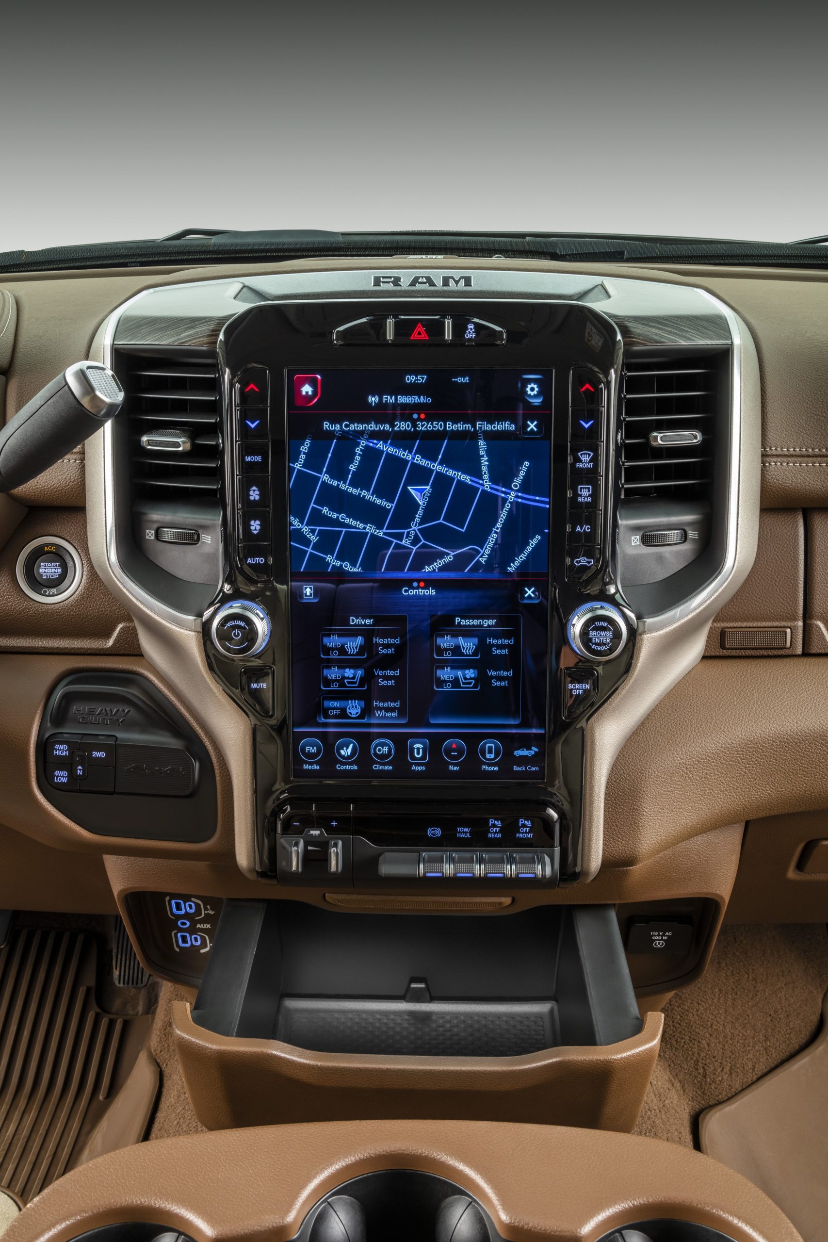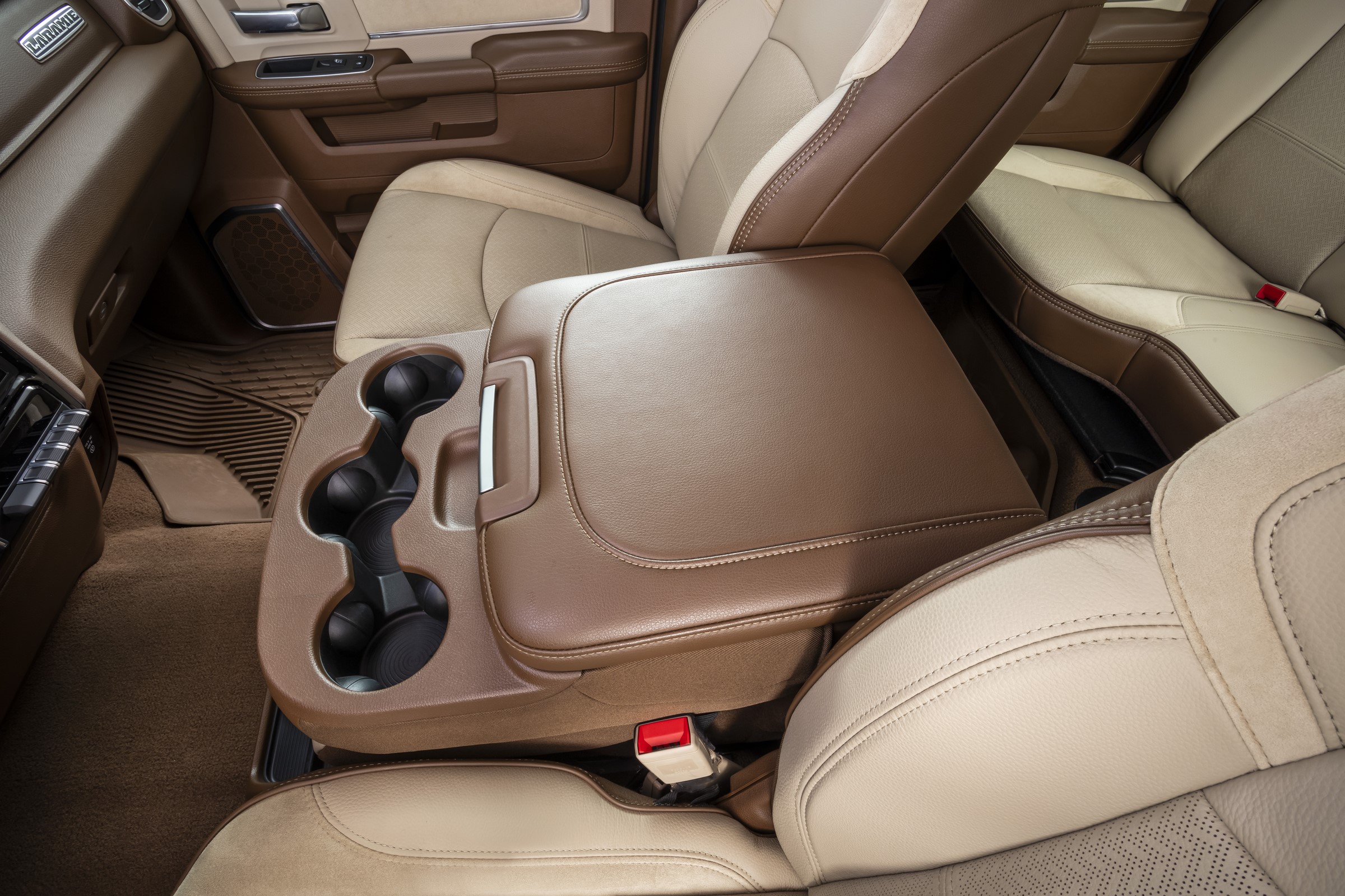 Para isso, a marca fez algumas preparações na caçamba da picape. As gavetas laterais (RamBox) foram removidas e a marca adicional cinco furos no piso, sendo que um deles é para o pino central que faz o engate do gooseneck (pescoço de ganso). Há também uma tomada de 115 volts e saídas de 4 e 7 pinos para alimentação do trailer.