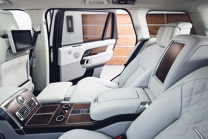 Por dentro, a Land Rover não economizou nos materiais nobres. Todo o acabamento interno é feito em alumínio, madeira e couro. Atrás, o banco foi substituído por duas poltronas individuais executivas. Elas contam com ajustes elétricos, aquecimento e resfriamento, programas de massagem e há ainda um descanso para os pés.