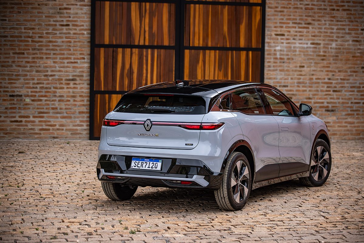 O Renault Megane E-Tech tem motorização que oferece 220 cv de potência e 30,6 kgf.m de torque, além dequatro níveis de frenagem regenerativa.
