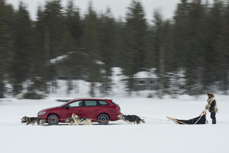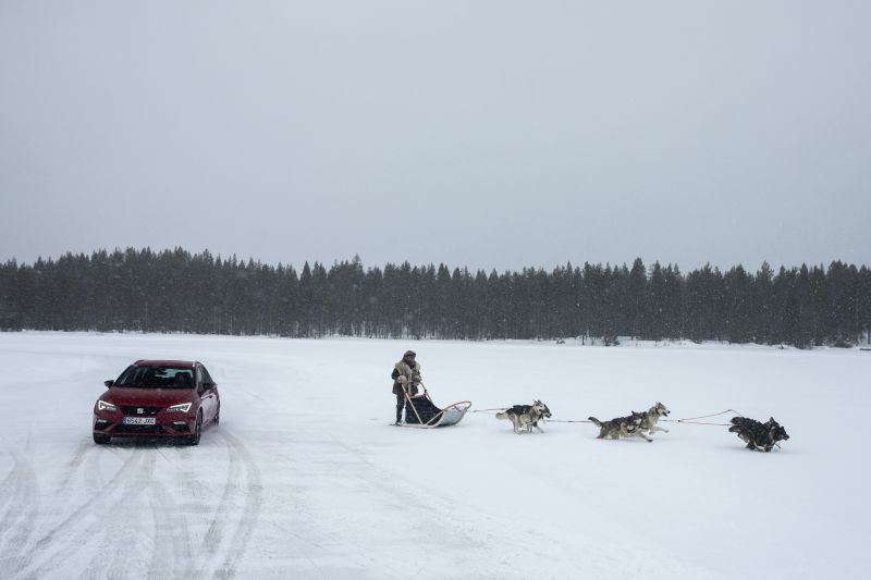 Seat Leon Cupra desafia seis Huskies Siberianos na neve
