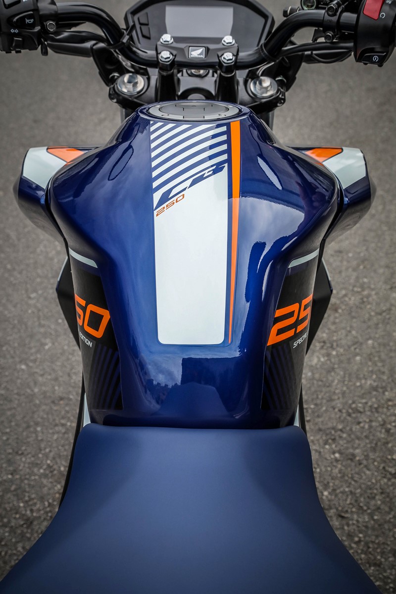 Abaixo do assento, o conjunto mecânico é o mesmo das demais versões. O propulsor de 249,5 cm³ gera até 22,6 cv de potência e tem 2,28 kgfm de torque máximo. Já o câmbio tem seis marchas.