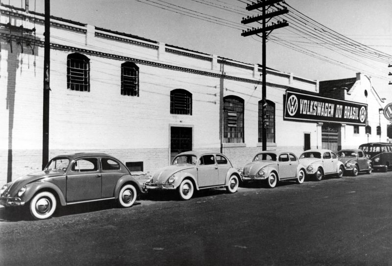- Quatro anos mais tarde, em 1953, a Volkswagen chega oficialmente no Brasil, e passa a trazer unidades desmontadas do Fusca, montando-os em solo nacional na fábrica do Ipiranga |Foto: By Spurzem – Lothar Spurzem (Own work) [CC BY-SA 2.0 de], via Wikimedia Commons