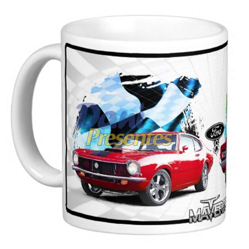 - Caneca carros: para quem gosta de carros antigos, esta caneca do Ford Maverick pode ser uma boa pedida. Esta é da loja Dani Presentes, e custa R$ 24 |Foto: Reprodução/Dani Presentes
