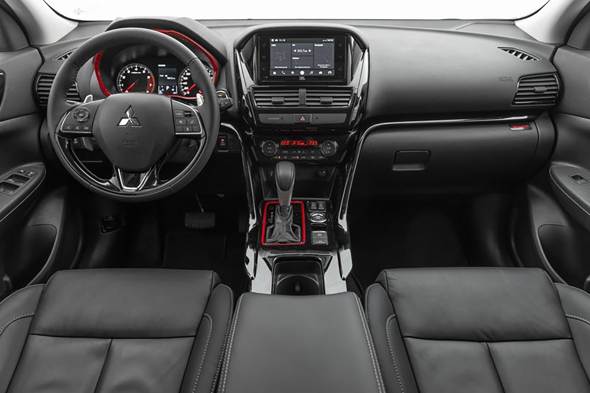 A esportividade presente no exterior do modelo se mantém cabine, onde a cor preta predomina, especialmente no acabamento em couro dos bancos e nos diversos itens em “black piano”, o que confere ao Mitsubishi Eclipse Cross Sport um ar arrojado e sofisticado.