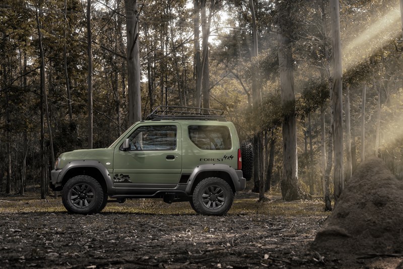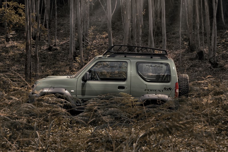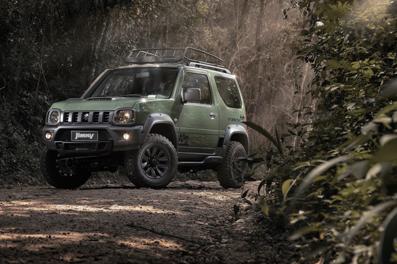 Como o nome sugere, as florestas serviram de inspiração para a versão. Por isso o Jimny Forest está disponível apenas na cor Verde Floresta. Alguns detalhes, como os para-choques e as rodas, recebem a cor grafite.