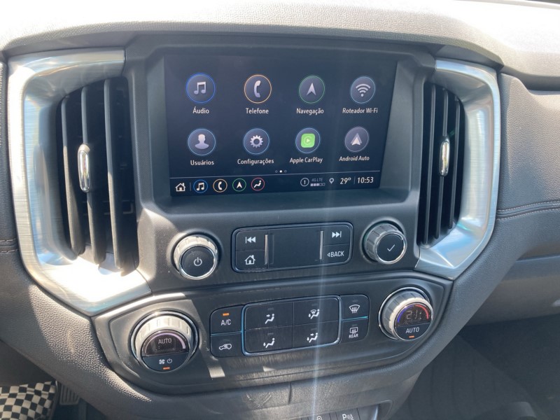 Apesar desse desconforto na posição de dirigir, o interior da picape é agradável. Há bastante uso de couro, como nos bancos que são completamente revestidos com o material e nas portas. O painel da S10 segue atual e ganhou a central multimídia MyLink atualizada. Com tela de oito polegadas, ela conta com espelhamento sem fio para Android Auto e Apple CarPlay, além de oferecer conexão WiFi por meio de um modem 4G. Como a picape tem uma proposta de uso em campos e fazendas, ter essa conexão pode ser algo positivo, já que o sinal é mais forte que o dos smartphones.