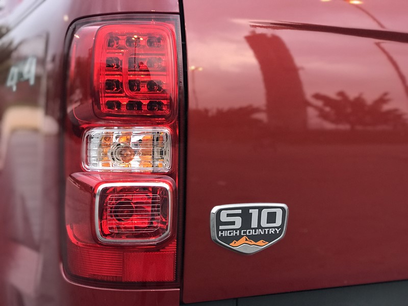 A versão High Country também vem bem recheada. Em termos de segurança, ela é a única da gama da S10 equipada com seis airbags. Além das bolas infláveis, há o obrigatório freio ABS com EBD, controles de tração e estabilidade, alerta sonoro de colisão frontal e de mudança de faixa, cintos de três pontos para todos os ocupantes, e o alerta de pressão de pneus.