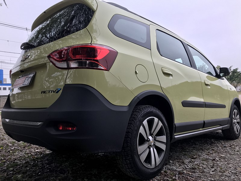 Antes restrito às outras configurações, agora os sete lugares estão disponíveis para a versão com apelo aventureiro. O numeral 7 no nome indica que este modelo é capaz de transportar mais dois passageiros. Com isso, a de 5 lugares passou a chamar Activ5. Ocupantes à parte, ambas também perderam o estepe pendurado na tampa traseira. Além de ser mais vulnerável a roubos, ele atrapalha na hora de abrir a porta. Fora que a Spin foi projetada com o pneu sobressalente posicionado dentro do porta-malas, já que sempre foi assim nas demais versões. Decisão acertada, portanto.