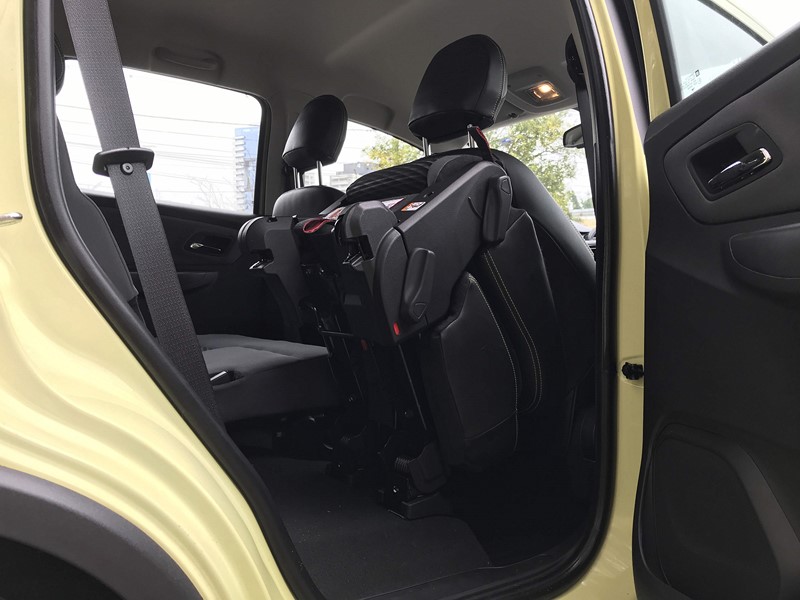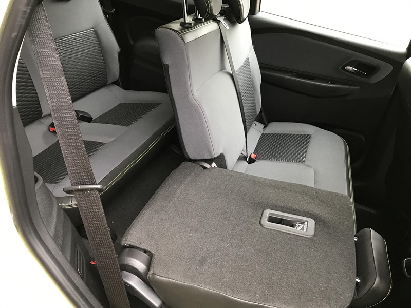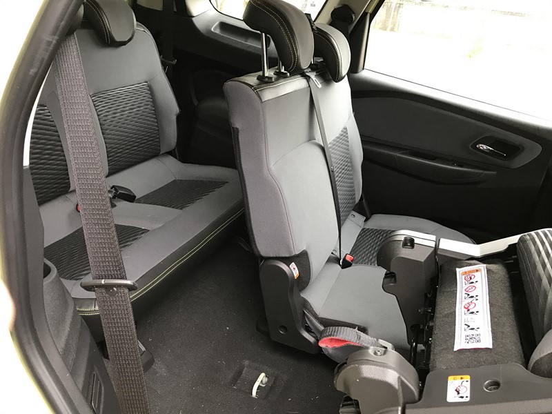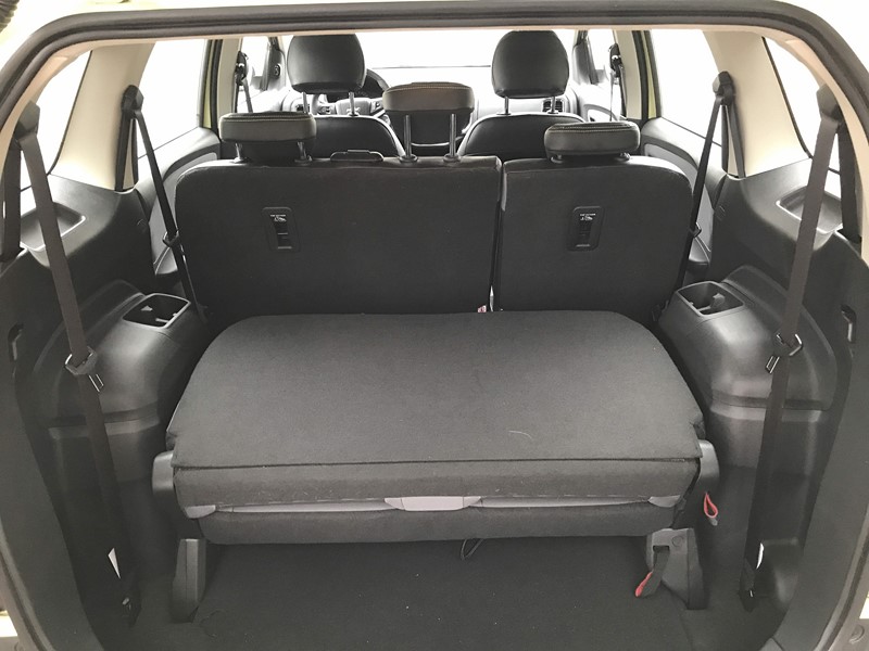 O acabamento interno é bom, mas poderia ser mais agradável ao toque, já que utiliza bastante plástico. Porém, tudo é bem construído e montado. Destacam-se também os diversos porta-trecos espalhados pela cabine. Outro detalhe que poderia ser diferente é o terceiro banco. Quando rebatido, ele ocupa espaço no porta-malas. Por mais que o espaço para bagagem seja bom nesse caso, se fosse um sistema semelhante ao da antiga Zafira, todos os 710 litros do compartimento seriam aproveitáveis. Para ter toda essa litragem, só com a versão de cinco lugares.