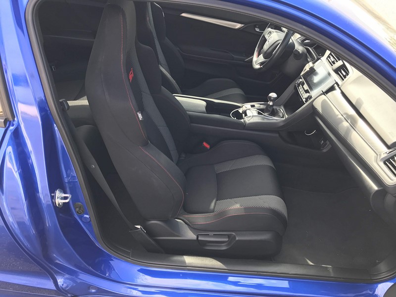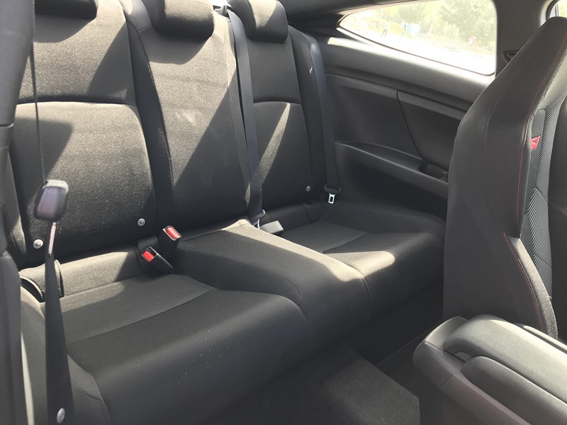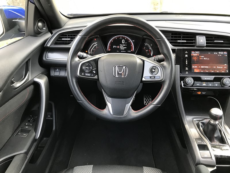Se por fora ele ostenta uma carroceria chamativa, por dentro o habitáculo não se difere tanto dos demais modelos do Civic. As exceções são os bancos do tipo concha, as costuras em vermelho e as pedaleiras em alumínio. O espaço é bom para quatro adultos, contanto que os do banco traseiro não sejam muito altos, por conta do caimento do teto. Quem tiver mais de 1,80 m viaja com a cabeça encostando no vidro traseiro.