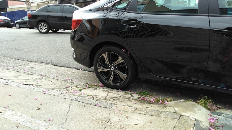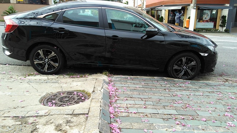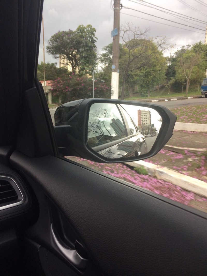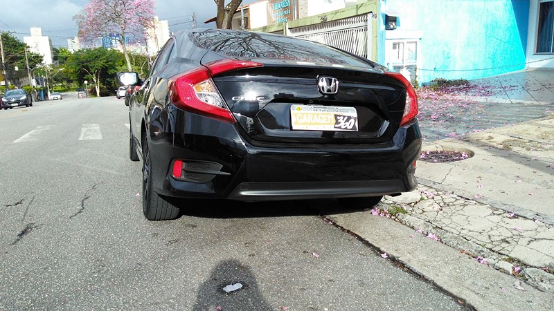 A câmera de ré também ajuda bastante o condutor na hora da baliza, já que a visão traseira do sedã é bem limitada. Na frente há algumas restrições visuais, que poderiam ser solucionadas com um sensor de estacionamento, item ausente nessa versão do Civic.
