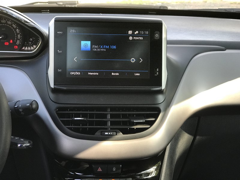 Entrar no 208 depois de já ter andado no 2008 dá uma sensação (boa) de déjà vu. Painel, volante, central multimídia e comandos do ar-condicionado de duas zonas são compartilhados entre os dois modelos. Até a posição de dirigir é semelhante, apesar do hatch ser mais baixo por ser um modelo urbano. A altura é ideal para quem gosta de um carro mais alto, mas não em demasia. Não é como um SUV e é menos elevada que a do C3, mas não é tão baixa quanto a do Hyundai HB20, por exemplo.