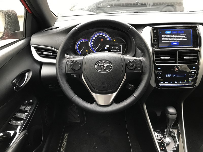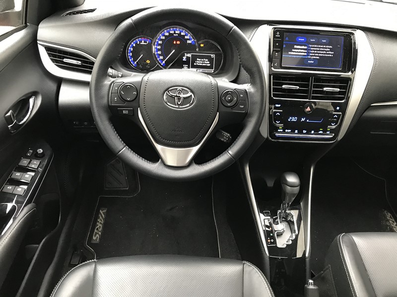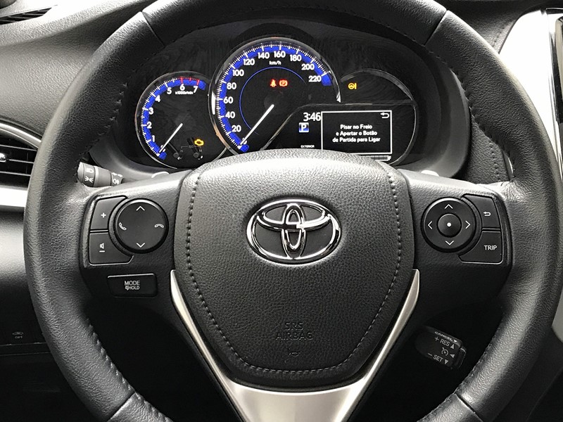 A dirigibilidade é o maior trunfo do Yaris. O volante é muito macio e tem direção leve, mas precisa. O câmbio CVT simula sete marchas e tem “troca” bem suave e imperceptível. Além disso, o acelerador é esperto, com o motor 1.5 de 110 cv entregando sua potência de maneira rápida e veloz. Ele não deixa o motorista na mão quando é preciso aumentar a velocidade em uma ultrapassagem ou até mesmo ao encarar aclives ingrimes.