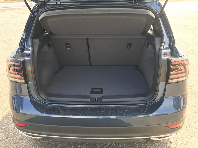 Com 2,65 m de distância entre-eixos, sobra espaço para as pernas dos ocupantes do SUV. Em uma viagem do ABC Paulista para Santos (por volta de 100 km), quatro adultos foram com conforto e sem apertos. O teto alto também colabora para a generosidade do com o espaço interno e para o conforto geral da cabine. O T-Cross só não tira um 10 nesse quesito por conta de seu porta-malas pequeno. Os 373 litros levaram as bagagens — que não eram muitas — com aperto.