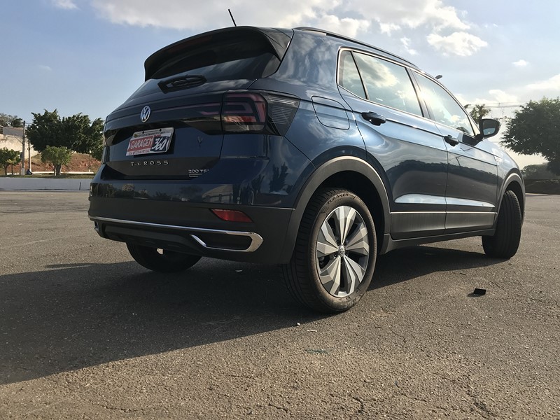 Ao volante, o SUV também se mostrou familiar aos dois modelos irmãos. O condutor pode até se esquecer por alguns instantes que está guiando um utilitário de carroceria alta. A estabilidade do T-Cross em rodovias faz com que ele se assemelhe a um hatchback convencional. Mesmo fazendo curvas a 105 km/h, a carroceria se mantém firme, como se estivesse em um trilho. A suspensão, embora absorva bem os buracos, cumpre bem seu papel em altas velocidades.
