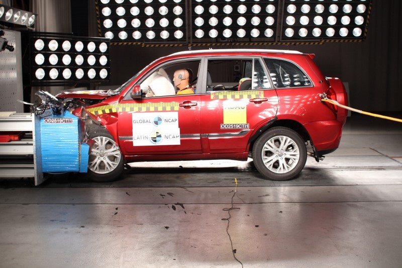 - O Chery Tiggo 3, fabricado na China, alcançou zerou para proteção de ocupantes adultos e conquistou apenas uma estrela para as criança | Foto: Divulgação