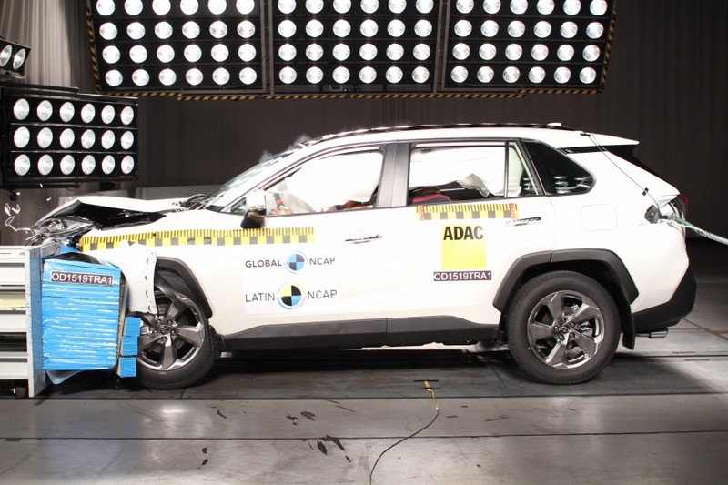 - O Toyota RAV4 conseguiu cinco estrelas para adultos e crianças. O órgão também certificou o modelo com o Advanced Awards de proteção para pedestres, por conta da frenagem autônoma de emergência (AEB) | Foto: Divulgação