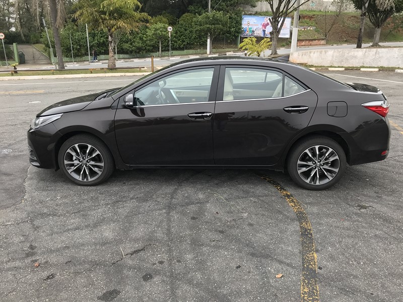 O automóvel testado foi o de cor Marrom Urban – novidade da marca anunciada em 2017 também para a SW4. O sedan médio conserva os traços clássicos da categoria e da família Corolla, mas a leve repaginada deu certa modernidade ao carro. A caída do teto para o vidro traseiro, detalhes no farol e parte dianteira são alguns exemplos disso.