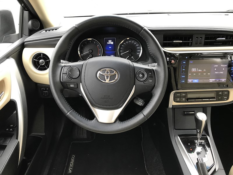 A qualidade no acabamento interno é outro ponto alto do design do Toyota Corolla Altis, que na versão 2.0, custa R$ 120.440. Para combinar com a Marrom Urban, a cor interna predominante é creme, misturado ao espaços em preto do painel e volante.