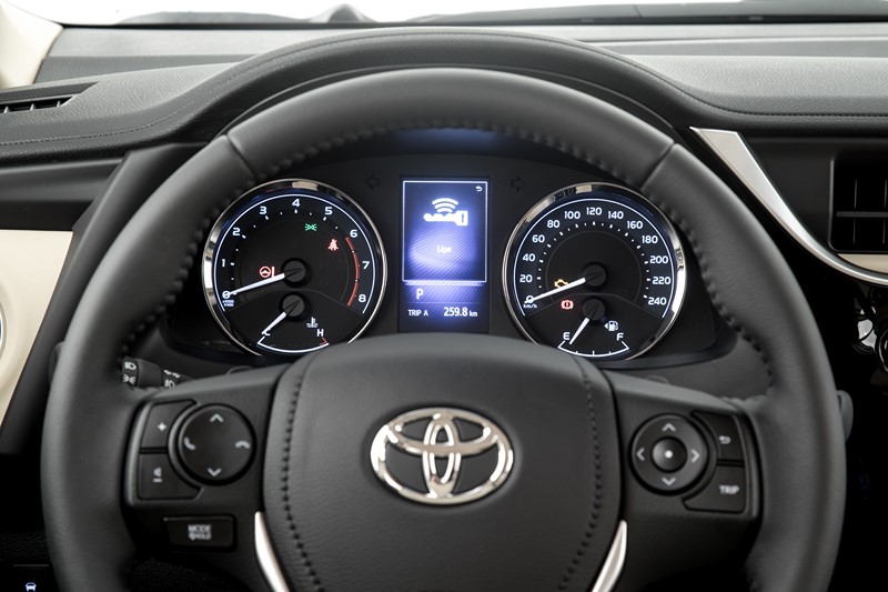 A transmissão é a automática do tipo CVT. O três volumes ainda conta com controle eletrônico de estabilidade (VSC), tração (TRC) e assistente de subida (HAC). O modelo tem sete airbags – dois frontais, dois laterais, dois de cortina e um de joelho para o motorista.