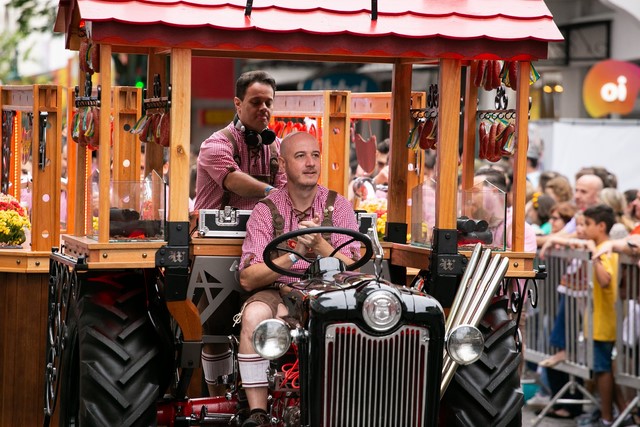 O veículo era uma herança de família e foi vendido após ficar 20 anos sem uso. Com 7 metros de comprimento, 3 metros de largura e 2,8 metros de altura, o trator distribui chope gelado e mais de 300 minilinguiças por desfile no evento.