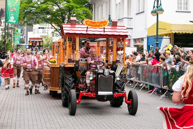Participam do desfile aproximadamente 60 adultos e 20 crianças usando roupas típicas alemãs. A Oktoberfest vai até domingo, 27 de outubro.