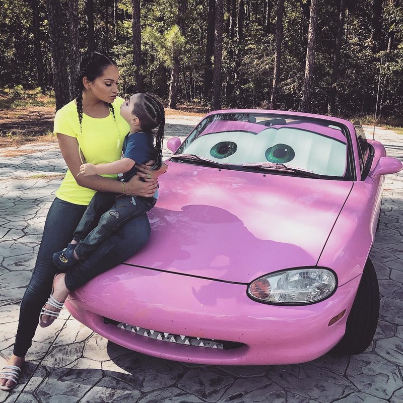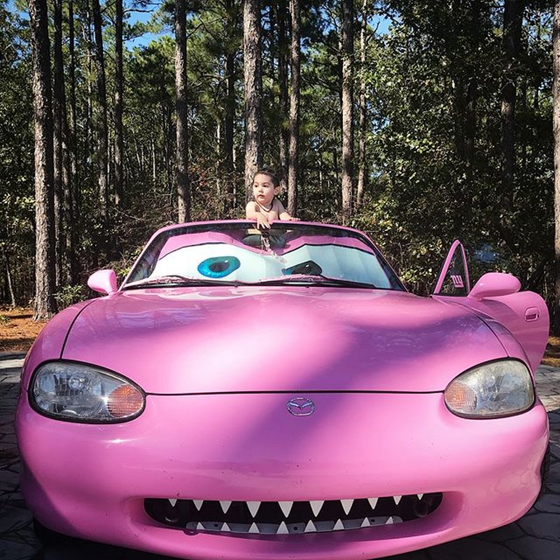 - Reby Hardy: como o filho da ex-lutadora de luta livre gosta muito da animação Carros, ela decidiu personalizar um Mazda Miata com as características dos personagens do filme |Foto: Reprodução/Instagram