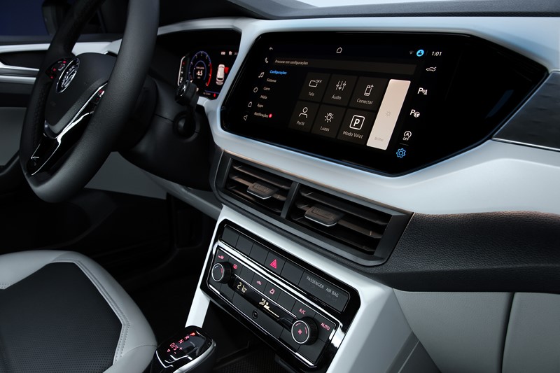 Versão topo de linha, a Highline, que segue sendo a única com o motor 1.4 TSI de 150 cv e 250 Nm de torque, ela agrega itens como moldura cromada nos faróis de neblina, frisos cromados na região inferior dos vidros laterais, “rack” de teto em acabamento “Silver anodized”, bancos revestidos parcialmente em couro, espelho retrovisor interno eletrocrômico, pedaleira esportiva com acabamento em alumínio, sensores de chuva e crepuscular, e sistema start-stop, que desliga e liga o motor automaticamente quando o T-Cross para em semáforo, por exemplo, gerando maior economia de combustível.