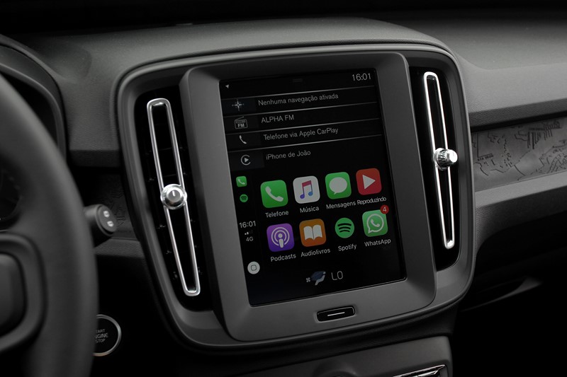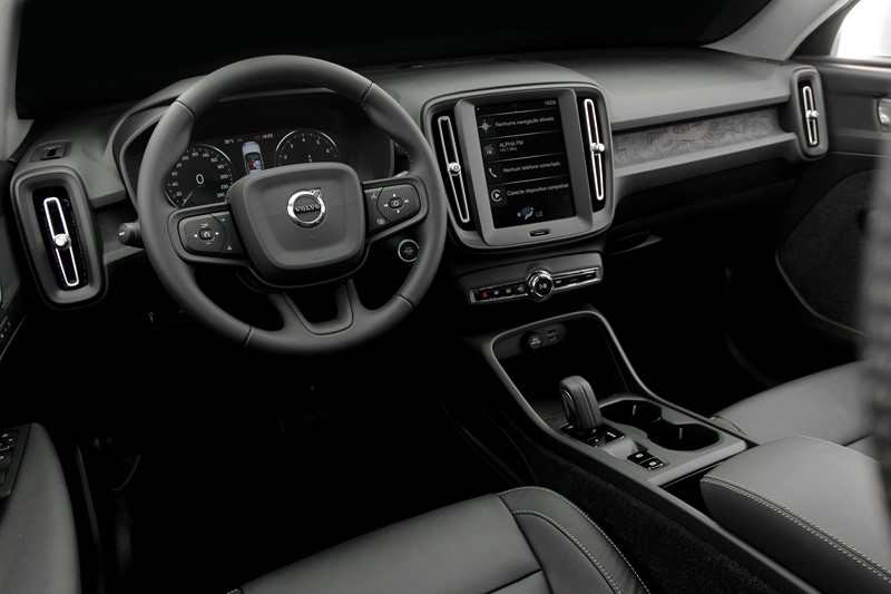 Honrando a fama de segurança dos modelos da Volvo, o XC40 T4 conta com sistema de frenagem automática, alerta de mudança de faixa, sistema de proteção em saída de estrada e sistemas de proteção contra impactos laterais e lesões na coluna cervical.