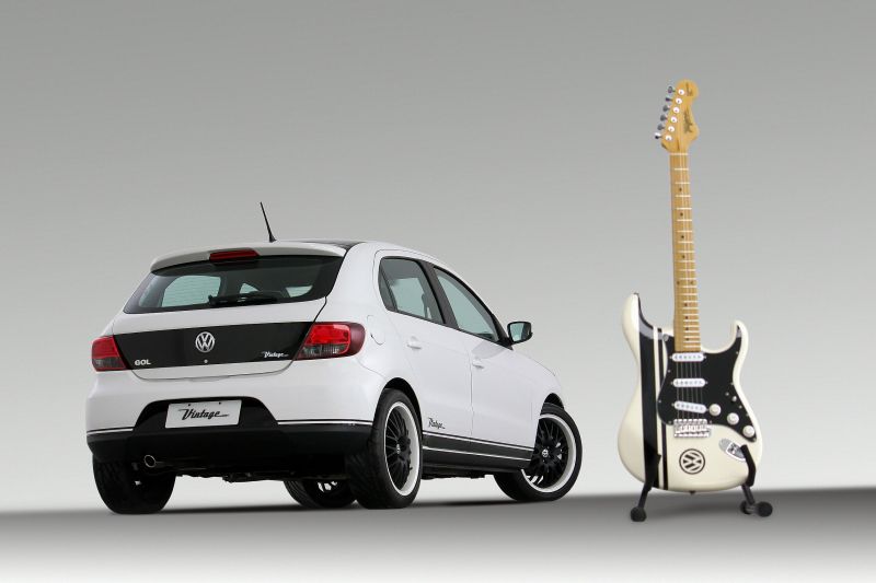 - Para comemorar o aniversário de 30 anos do modelo, em 2010, a Volkswagen lançou 30 unidades do Gol Vintage, que contava com visual e pintura diferenciados e vinha com uma guitarra no porta-malas | Foto: Divulgação/VW