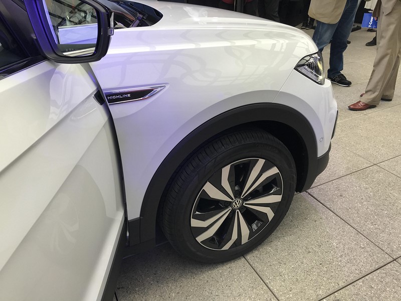 Visto de perfil, o T-Cross nacional lembra a dupla Polo e Virtus, principalmente por conta do vinco em formato de flecha. Assim como nesses dois modelos, o nome das versões ficará no para-lama.