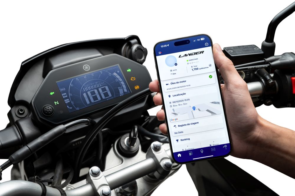 O sufixo “Connected” não é por acaso. A Lander 2026 vem equipada com o sistema Y-Connect, que pareia o painel digital blackout ao smartphone via Bluetooth. Através do app, o motociclista tem acesso a: